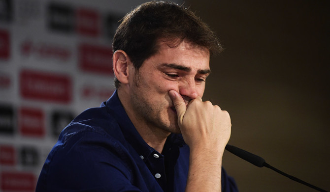 “Hoy he venido a este estadio, a este gran estadio…”, suspiró, “a despedirme de todos vosotros y en especial del madridismo…”. Debió ser en ese punto. Cuando sus ojos repasaron la palabra sagrada, “madridismo”, cuando rompió a llorar. Entonces resonó el repique de las cámaras otra vez. Casillas parecía desconsolado. Las lágrimas le cayeron por las mejillas. Pero siguió leyendo.“Como sabéis”, se recompuso, “dejé de pertenecer al Real Madrid y pasé a formar parte del Porto. Quiero deciros que la decisión de irme al Porto obedece a dos motivos fundamentales. Primero, la ilusión que me han transmitido el presidente [Pinto da Costa], el entrenador [Julen Lopetegui], con quien nos conocemos desde hace tiempo, y sobre todo el resto del equipo. Y segundo por las muestras de cariño que he ido recibiendo desde que la gente ha sabido que mi destino era Portugal. Me han ganado y he estado muy feliz. Haré todo lo posible por no defraudarles y conseguir el mayor número de títulos posible. Por tanto, muchas gracias al Porto por haber confiado en mí”.